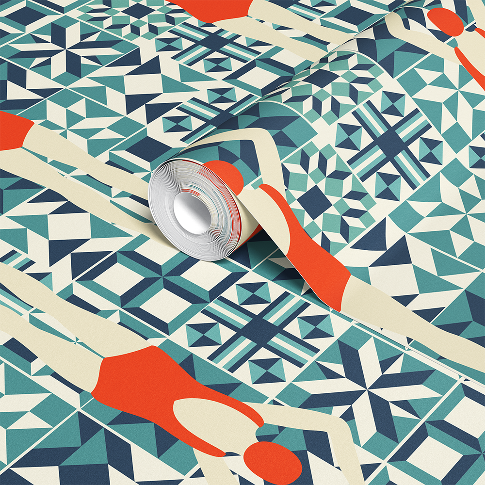 Lou's iconic Swimmers print is now available as wallpaper. Perfect for seaside retreats, bathrooms or anywhere a splash of Art Deco swimmers is desired.